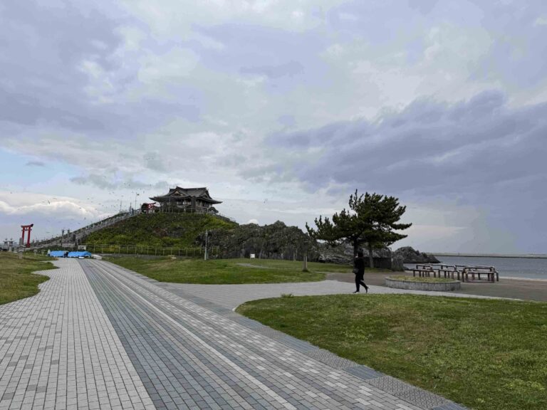 御祭神は市杵島姫命(いちきしまひめのみこと)で、弁財天と同一視される神様とされ、金運上昇、商売繁盛、芸事上達のご利益があると信仰されています。特に有名なのが「ウミネコのフンが落ちる=運が付く」という独特の縁起。実際に「運が付いた人は運が上がる」と言われ、参拝者の間では話題になっています。