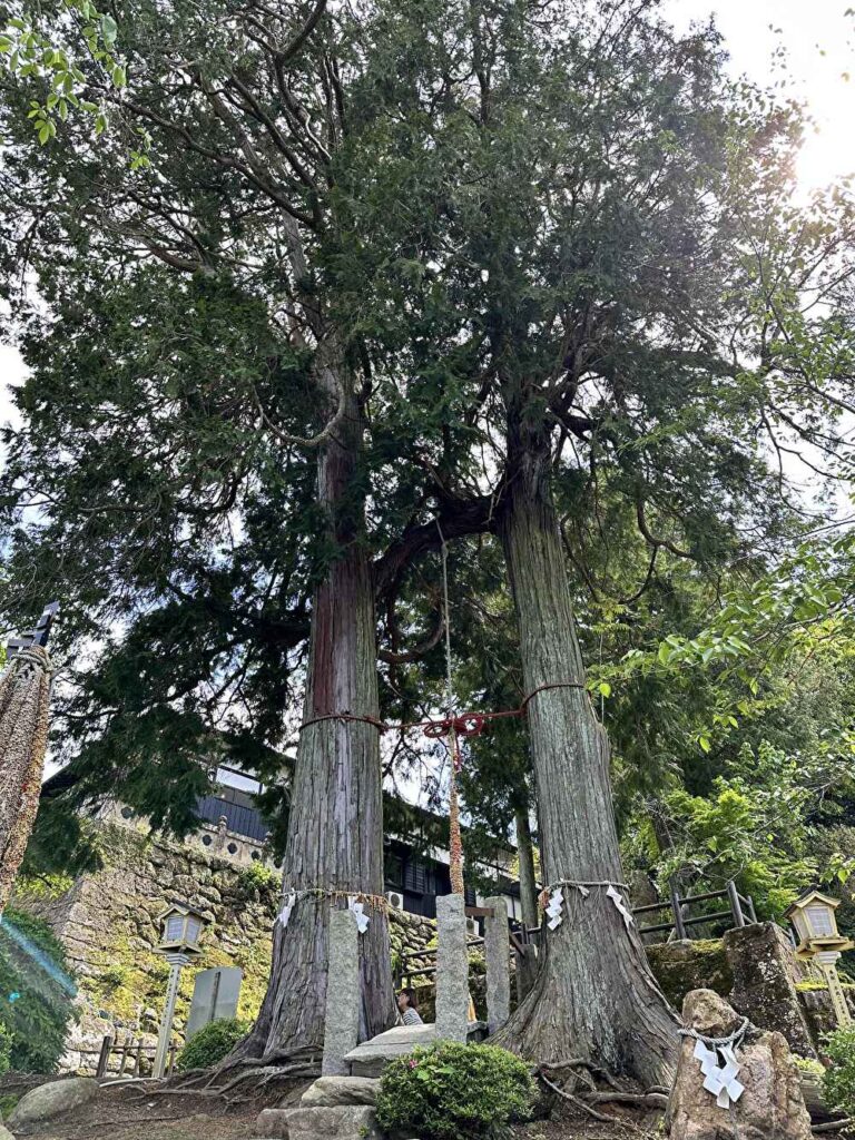また、武雄神社の入り口に立つ2本の木は、寄り添うように並ぶ姿から「夫婦檜(めおとひのき)」と呼ばれ、参拝者を最初に迎えてくれます。夫婦円満や良縁、家族の繁栄の象徴とされ、日常の世界から神聖な境内へ心を切り替える“結界”の役割も担う存在です。鳥居をくぐる前に見上げることで、気持ちが自然と整い、清々しい参拝の始まりを感じられます。