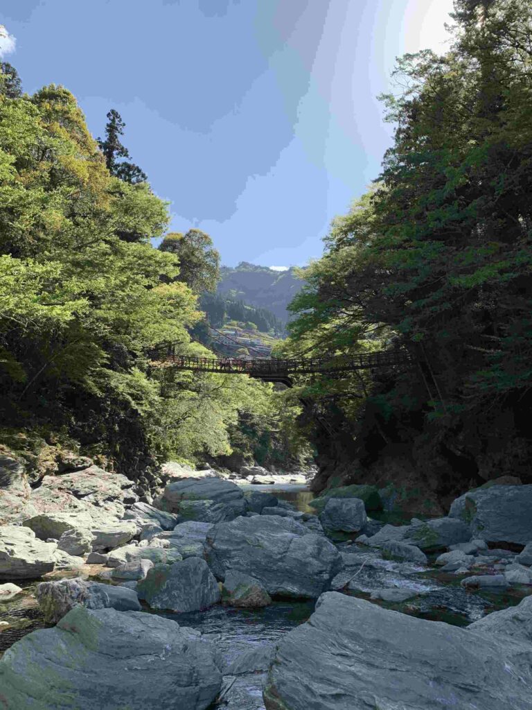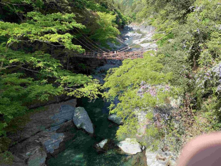 次に実際に渡ると、橋が大きく揺れ、床板の隙間から祖谷川が見えるため、他では味わえないスリルを体感できます。一方で、観光シーズンの日中は混雑しやすいため注意が必要です。そのため、朝の早い時間帯や夕方以降に訪れることで、比較的落ち着いて楽しめます。秘境ならではの自然と歴史を体感できる、四国屈指の観光名所です。