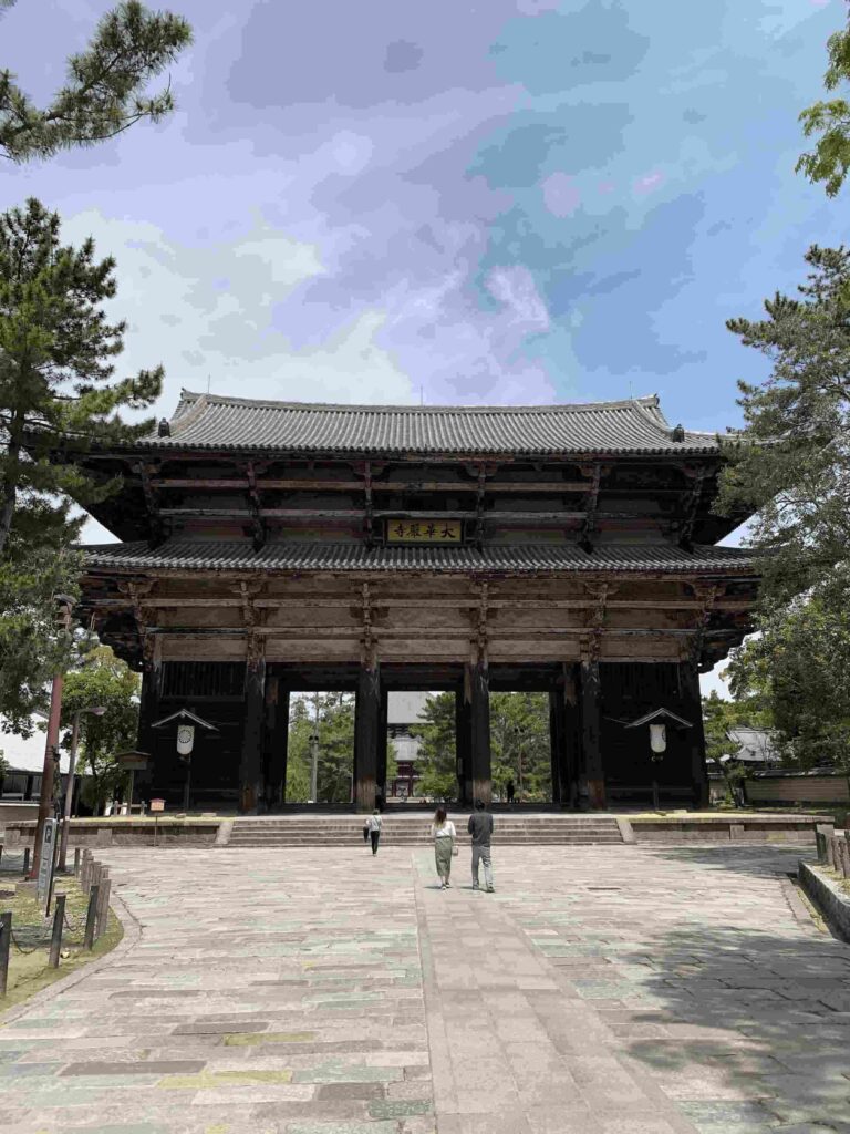 また、東大寺のもう一つの見どころが南大門に立つ金剛力士像です。鎌倉時代に造られたこの像は、力強い筋肉表現と躍動感で知られ、日本彫刻史の傑作とされています。境内は奈良公園と隣接し、鹿が自由に歩く光景も東大寺ならではの風景です。歴史・信仰・自然が一体となった、日本を代表する文化遺産です。